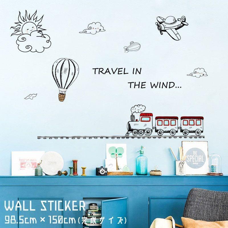 ウォールステッカー ウォールシール 手書き感 列車 電車 気球 太陽